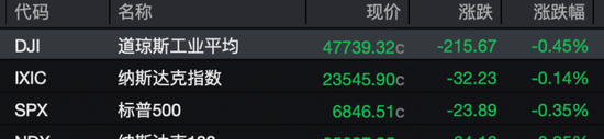 大型科技股涨跌互现,美光科技涨超4%,安森美半导体涨3%,博通、台积电涨超2%,超微电脑涨近2%,阿斯麦、英伟达、微软、AMD涨超1%;奈飞、特斯拉跌超3%,英特尔、谷歌-A跌超2%,亚马逊、ARM跌超1%,META跌近1%,苹果小幅下跌。