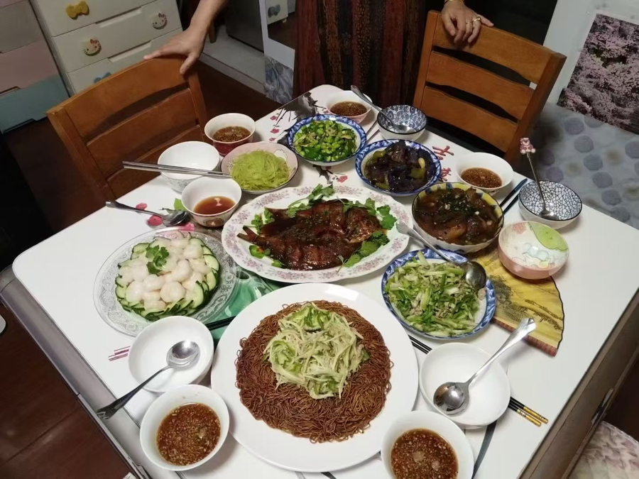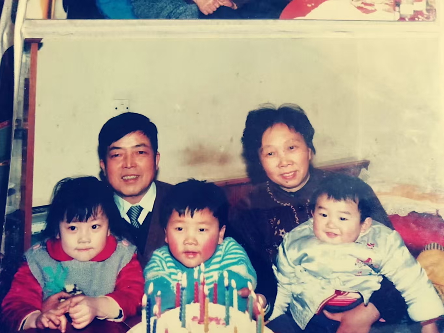 杨臻一家在江南新村的老照片,一张饭桌就能占据一整个房间。受访者供图