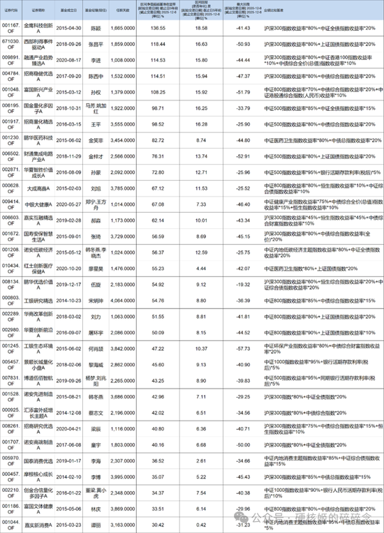 当然,这里面有不少基金产品在三年间更换了基金经理,有部分基金经理接管不足一年。